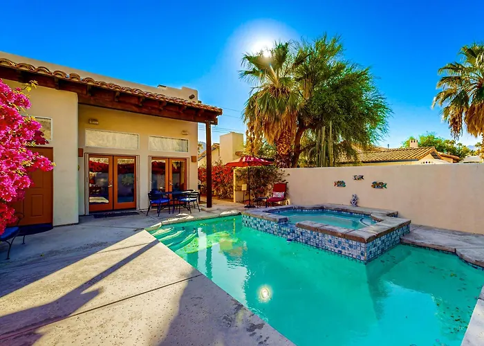 Die Avenida Montezuma Escape Permit# 221,616 verfügt über eine sonnige Terrasse mit Blick auf die Berge und ist 40 Autominuten vom Flughafen Palm Springs entfernt gelegen. Diese Villa bietet einen Außenpool sowie einen Jacuzzi, damit Sie sich nach einem anstrengenden Tag entspannen können.
